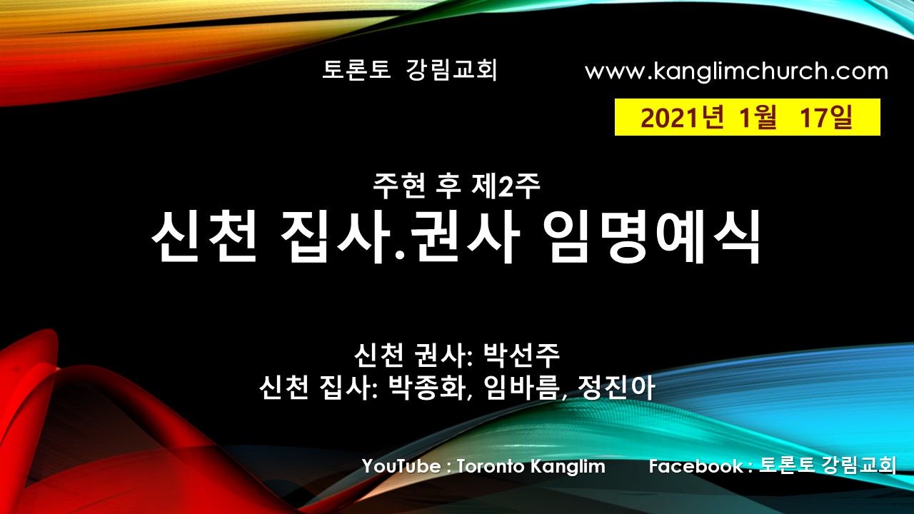 [2021.1.17] 토론토 강림교회 온라인주일예배 / 신천권사.집사 임명예식